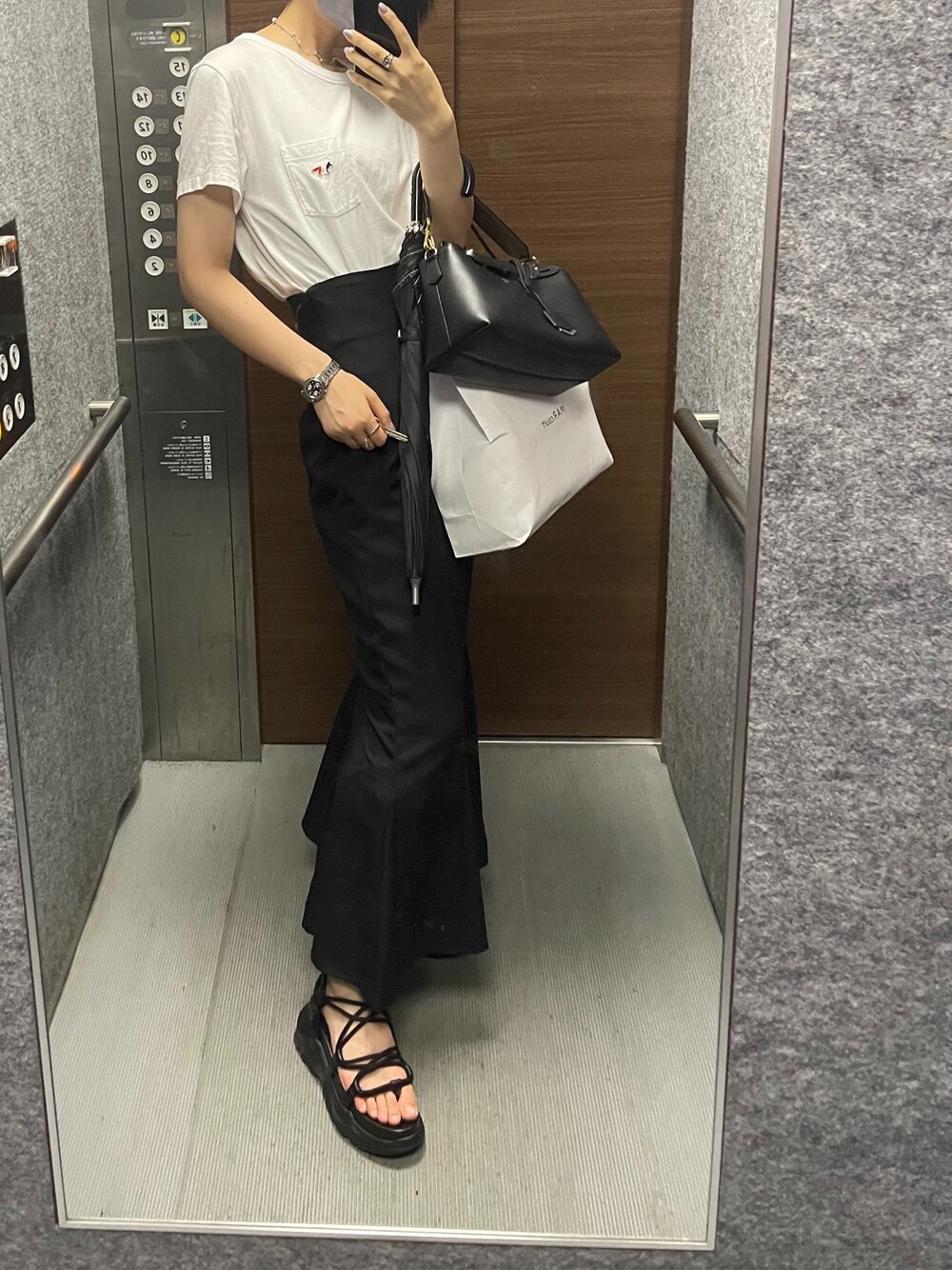 スナイデルのタイトなマーメイドスカート動き制限されるけど可愛い エレベーターの中で写真撮りがちpart4