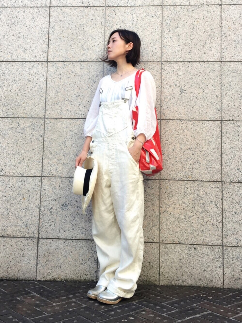 昨日の格好です。 しかし昨日は暑かったなー 横須賀で軍港巡りしてきました。 上下白にシルバーのサボを。 オーバーオールはかなり ゆるめに落としてるので トップスはチュニック丈が安心😊