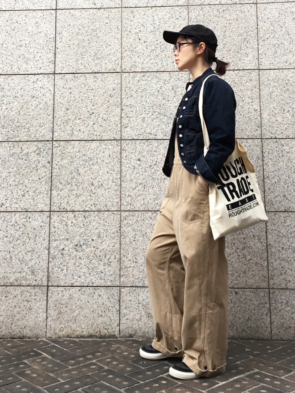 昨日の格好です。 ワイドなオーバーオールに コンパクトなジャケを。