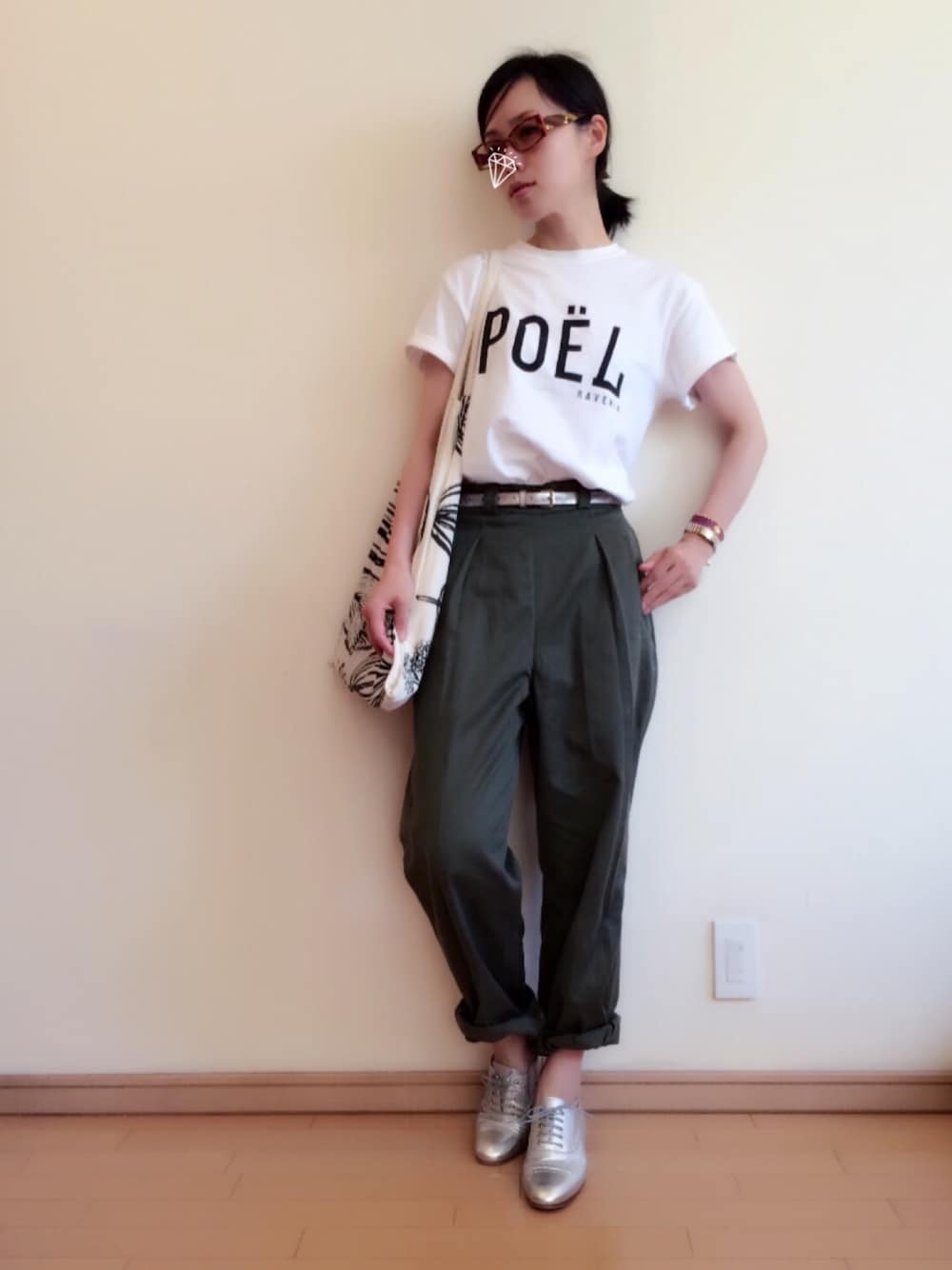 アーミーパンツは、フランス軍 1960年代にレディース用に 製造されたもののデッドストック。 らしい。(下北に行くと真っ先に チェック入れるhoochie coochieで 購入) このハイウエスト感 フロントのタック サイドで開閉するデザイン。 かなり女性っぽさ出てます😚 いろんな眼鏡かけて実家に帰るたび 兄に大橋巨泉風だとか 大木凡人だね、とか 突っ込まれていますが この度入りサングラスの形容は ウルトラマンセブンでした。