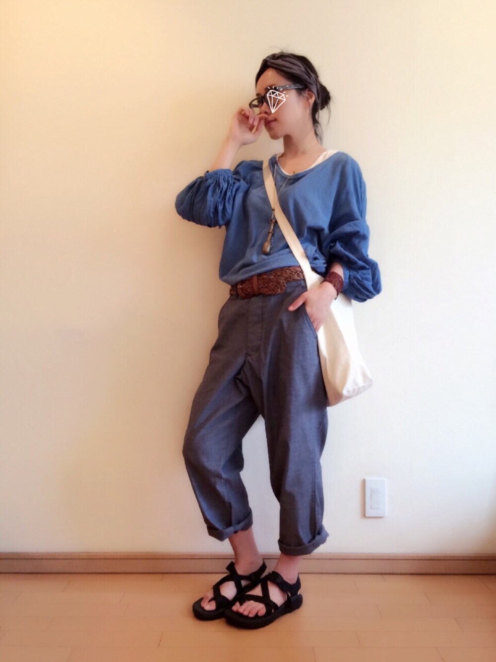 雨が続いてるのでスッキリしたくて ヘアバンドの日が増えてます。 家着の延長で外に出てる感覚😑 HAVERSACKのパンツ、 メンズのSサイズで ちょっとおじさんっぽい シルエットが気に入ってます😊 木のボビンのネックレスも 原宿の小さいメンズのお店で 見つけました。 何にでも合わせやすくて これまたお気に入り😁 写真に撮ってみて、gentenの バングルと、古着屋で買った ベルトの相性がいいことに 気付きました😊