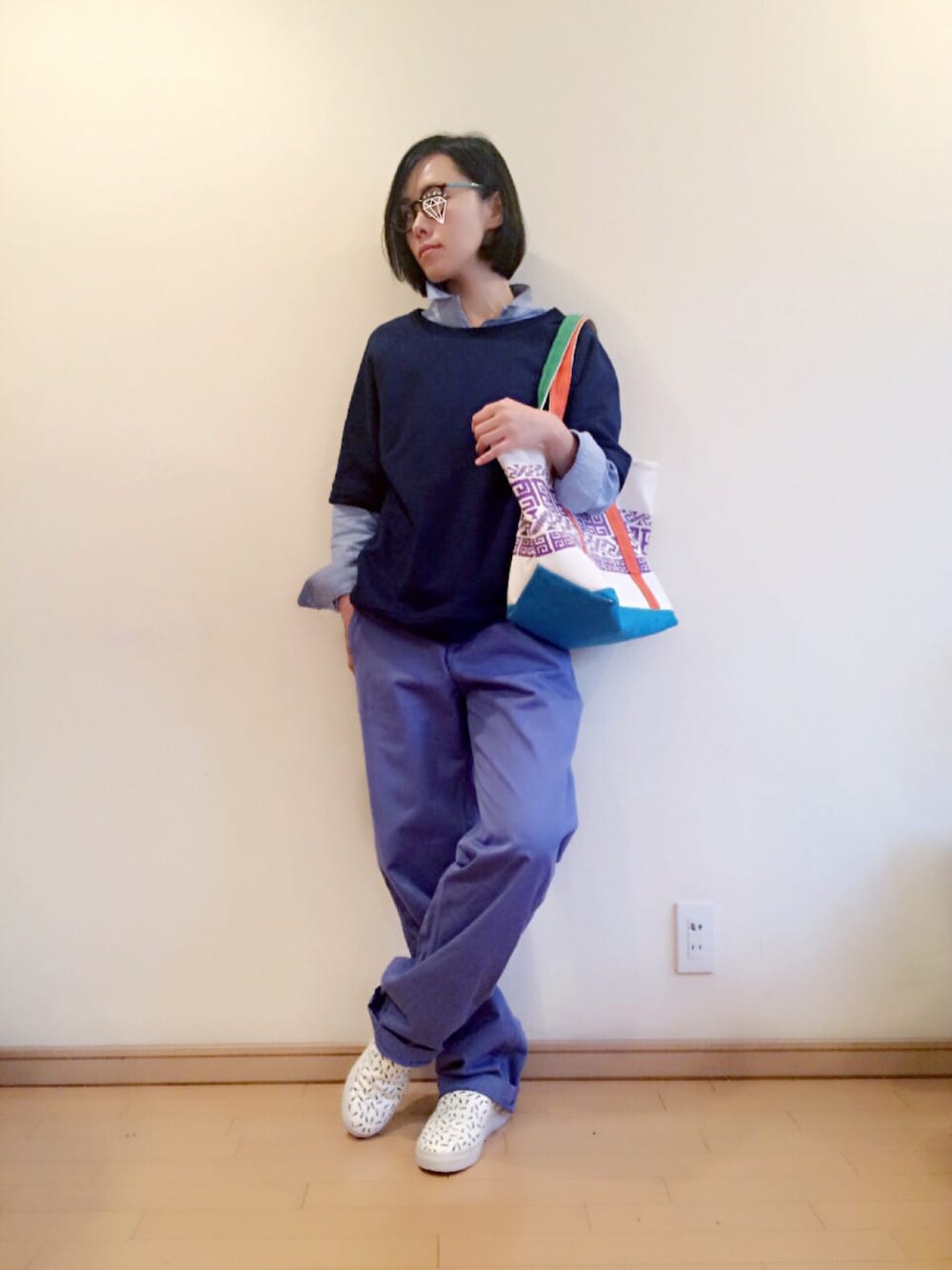 ブルーのグラデーションで☺️✨ 紺色のスウェットは サンフランシスコ発の EverLaneのメンズものです。 素材の良さとサイズ感に 惹かれました😘 肉厚で暖かいです。 ただこれではちょっと寒いので トレンチコートを羽織って 出かけました😁