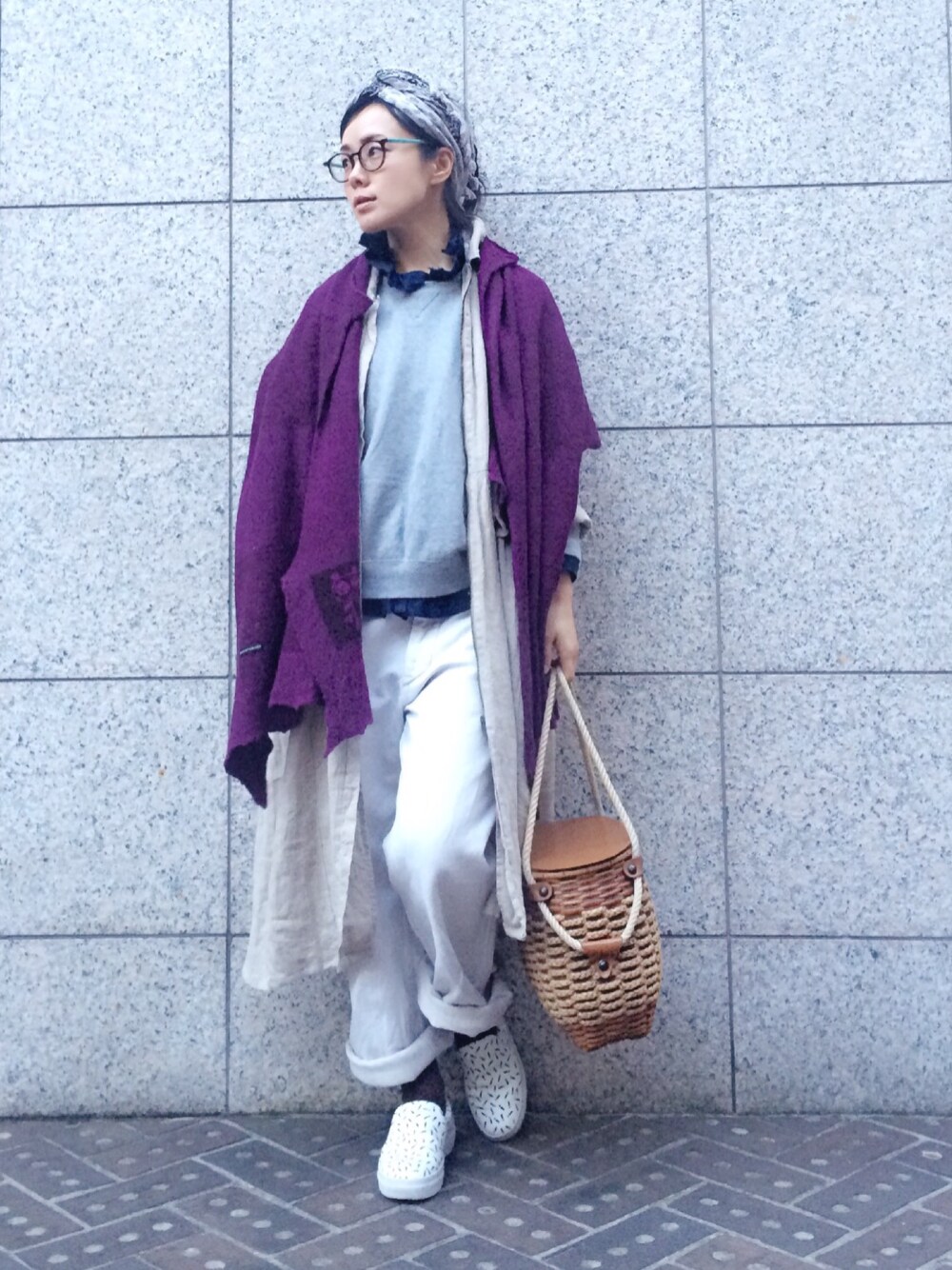 なんだか今日は肌寒かったので ブタパナの圧縮ニットマフラーが 役立ちました🐷 Luxeの王子様っぽいフリフリ襟の ブラウスはスウェットと合わせて。 アンティークのカゴバッグは 金具が古くて2度修理に出してますが 頑張ってくれてます😊