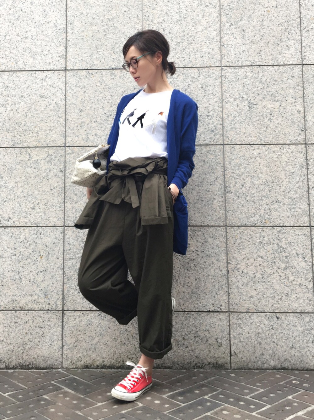 ちょっと前の格好です。 ZARAのオールインワンを 腰で結んでみると ポケットみたいな 動きが出て面白い☺️