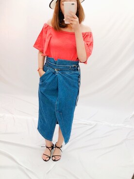 「twettyのアイテム(スカート、ブルー系)」を使った、吳庭兒さん(レディース)の夏コーディネート