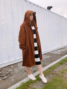 「twetty&崔弟のアイテム(ジャージ、シルバー系)」を使った、吳庭兒さん(レディース)の秋コーディネート