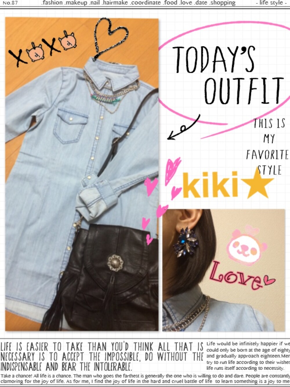 kikiのシャツ/ブラウス「デニムチュニックシャツ長袖」を使ったコーディネート