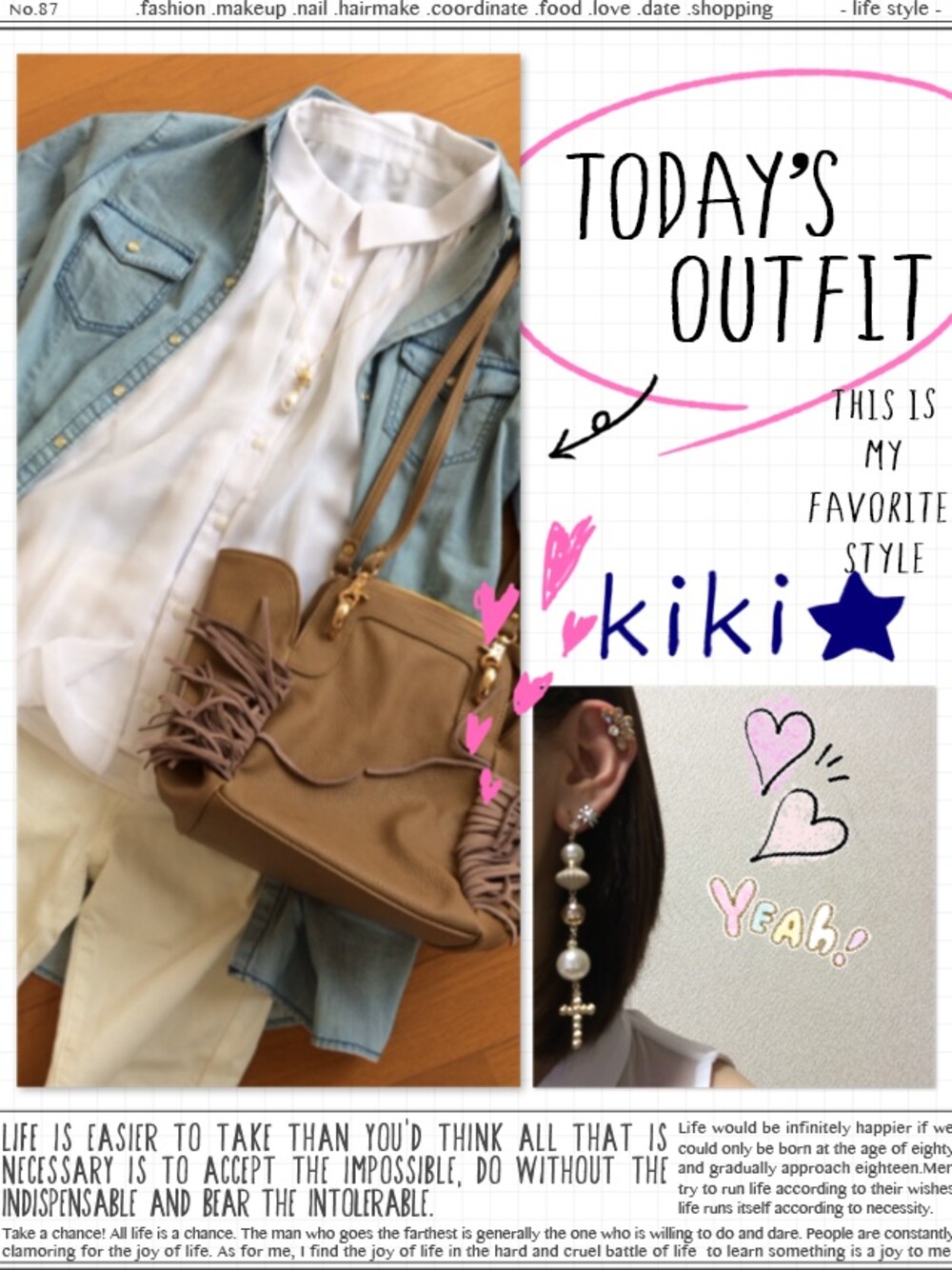 AZUL by moussy¥4,180GIORDANO¥4,180この画像から似たアイテムを検索できます1310お気に入り (3)00kikiさんへのコメントNO COMMENTコメントはスマートフォン用アプリからご利用できます着用アイテム¥4,180AZUL by moussyAZUL by moussyシャツ/ブラウス (ホワイト系)シャツ/ブラウスサイズ:FREE探すZOZOTOWNで探す¥4,180GIORDANOGIORDANOシャツ/ブラウス (ブルー系)シャツ/ブラウスサイズ:MEDIUM着用コーデ:6件探すZOZOTOWNで探すkikiのシャツ/ブラウス「シフォンドレープノースリシャツ」を使ったコーディネートパンツ…ユニクロ バッグ…rose budコメントを表示2014.5.9着用ブランドAZUL by moussyGIORDANOタグ#ホワイトデニムモデル情報女性・155cm似ているアイテムAZUL by moussy × シャツ/ブラウスGIORDANO × シャツ/ブラウスkiki@tink0153 / 155cm / WOMEN0コーディネート0フォロワー注目のコーディネートアプリでもっと見るもっと見る
