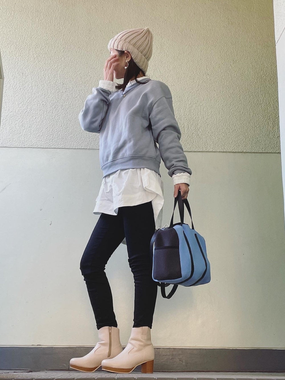 @workman_plus #レディース防風撥水ストレッチリバーシブルウォームフーディー ズボン&トップス #GU #スウェットプルオーバー #レギンスパンツ 中に着たシャツ #proseverse ハイネックギャザープチハイネックブラウス 靴 #MAJESTIC_LEGON バッグ #佐渡潜水 フルオーダー品 鞄到着が嬉しすぎてウキウキのコーデです💕