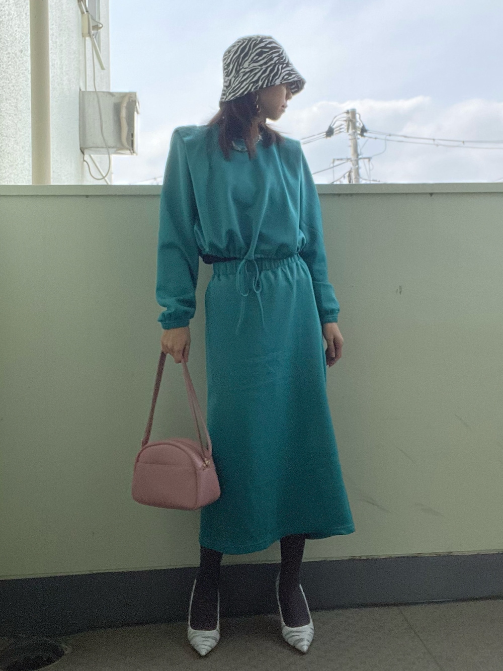 instagramで軽いノリでやろ〰と始まった 【虹色🌈コーデ週間💚】 本日4日目は緑💚💚 基本プチプラコーデです💖 いいね、フォルダイン、フォロー嬉しいです😊 アウターverは2枚目です アイテムに写真をつけることをようやく覚えました笑 SHEIN購入品 プルオーバー&スカートのセット ¥1214 ゼブラハット ¥335 パンプス ¥2092 しまむら購入品 ショルダーバッグ ¥990 フェイクタイツ ¥759 トップスのレースインナー fifth ちゃんと首元までレースがあるので重ね着するととても映える アウター discoat 似たようなアウター何枚か持っているけど、今日の服にはこれが一番合ってると自分的に思ったのでこちらをチョイス💖 裾しばっても可愛いし今の時期凄い使えるアイテムです✨ &アラフォー的にはお尻が隠れる丈はありがたい🤣