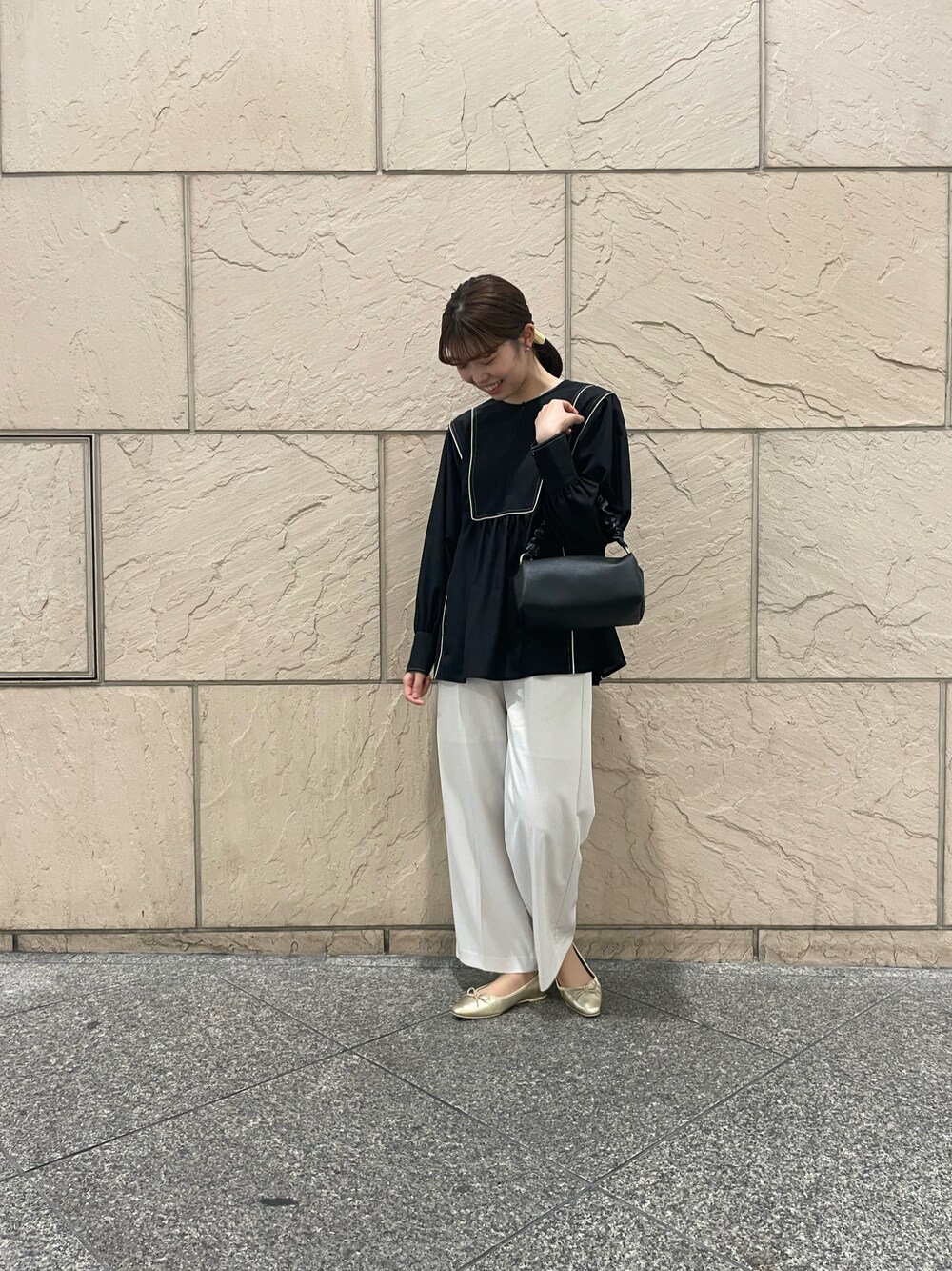 白×黒コーデ🫶🏻´- 差し色にゴールドを持ってくることで、お洒落感、大人っぽ感がアップしますね😚 このコーデの私の1番の推しはブラウスのパイピング!かわいすぎます🥺🥺