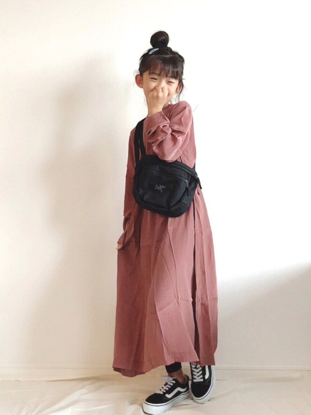 kannn のワンピース「【ママとおそろい】シルクタッチスキッパーロングワンピ」を使ったコーディネート