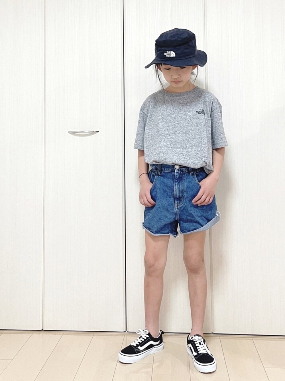 kannn のスニーカー「キッズ VANS ヴァンズ OLD SKOOL(19-22) オールドスクール V36 CK BLACK」を使ったコーディネート