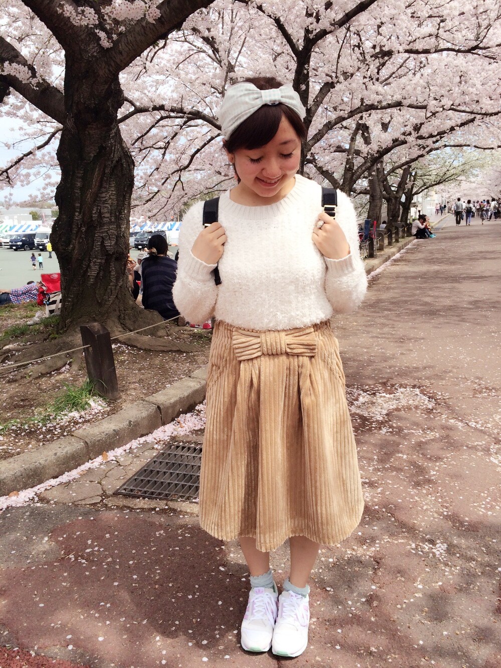 待ちに待ったお花見٩(˃̶͈̀௰˂̶͈́)و🌸 雨予報でしたが、万博公園の太陽の塔のおかげで晴天です☀️やったぁ! 春らしくパステルカラーを取り入れてみました💐