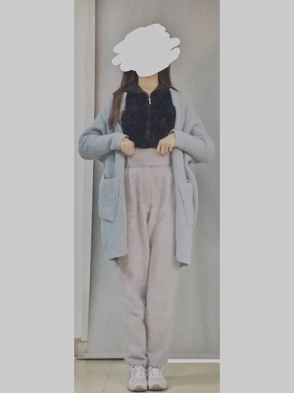 这条裤子如果不是因为掉毛严重也许就成了我心目中的最爱… 黑色背心也是毛绒绒的 这一套下来其实很暖