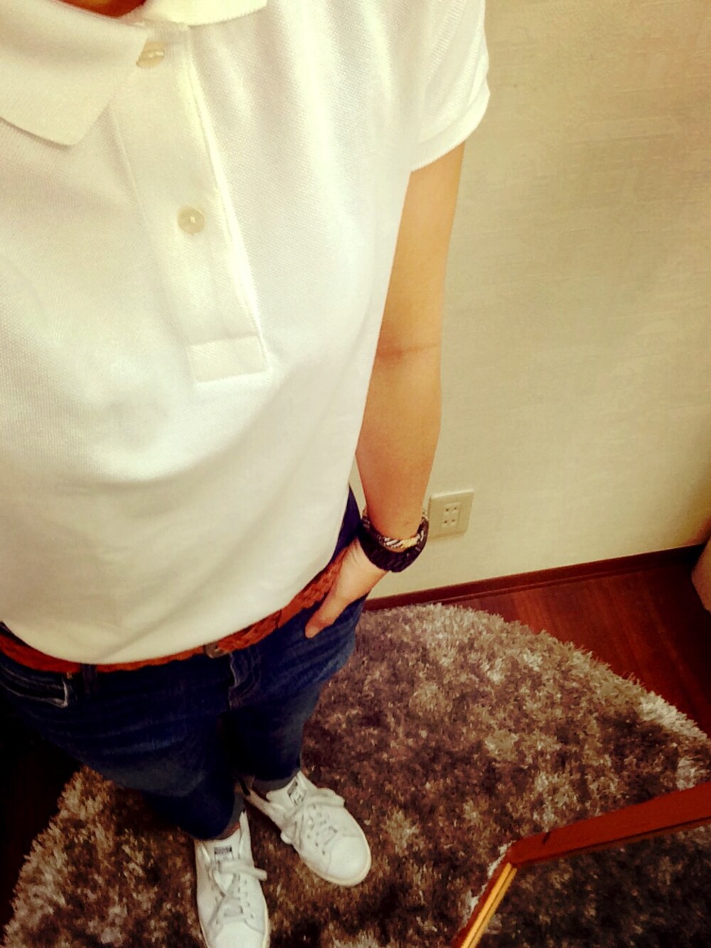 今日は、バイトだったため 全身仕事モードで(^^) ポロシャツ イン して スクールっぽさを 出してみました( ̄▽ ̄)