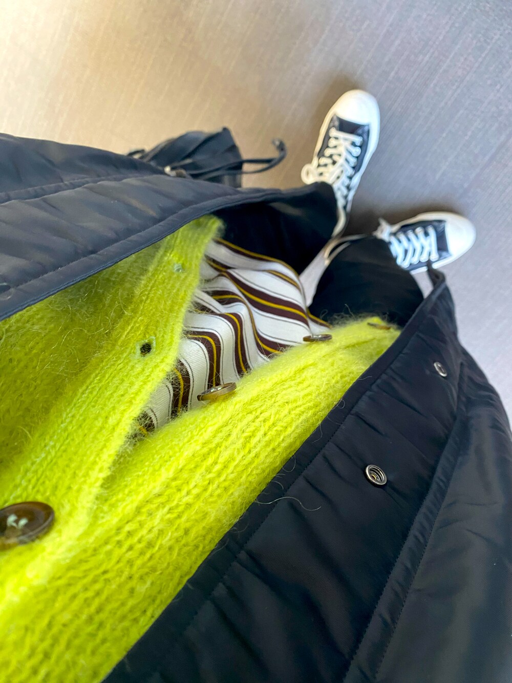 xxxmanyxxxのカーディガン/ボレロ「<JOHN TULLOCH>モヘヤ Vネックカーディガン」を使ったコーディネート