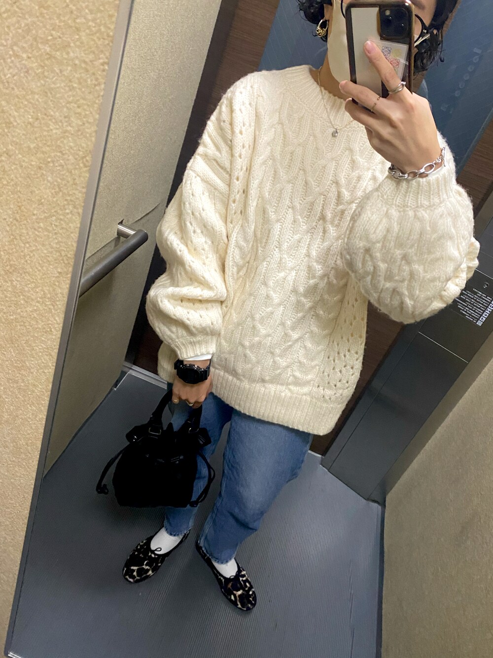 xxxmanyxxxのニット/セーター「BY 透かし編みケーブルニットプルオーバー ∴」を使ったコーディネート