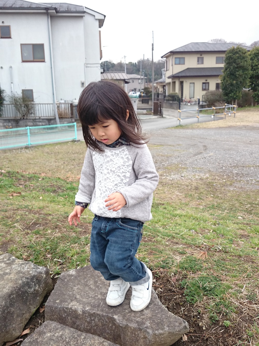 ジャンプする寸前(笑) 真剣な顔(笑) シンプルなコーデにしました🎵 下からシャツが出ると可愛いんだけど… 段々暖かくなってきたなぁ🌸