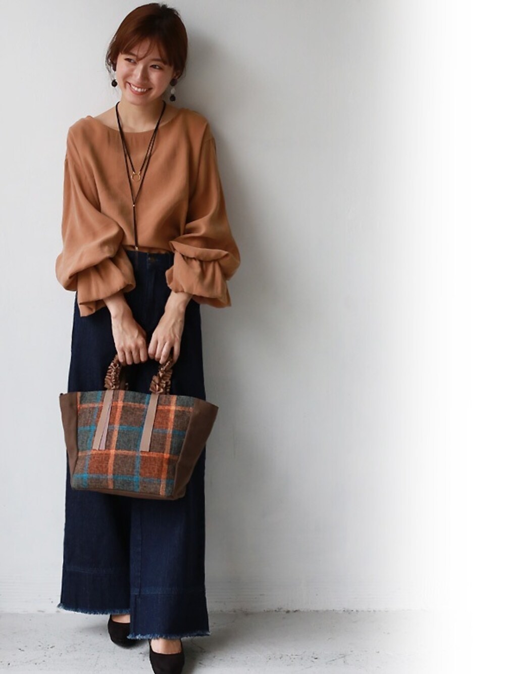 REALCUBEのトートバッグ「REAL CUBE グログランリボンフリルハンドルチェックトートバッグ」を使ったコーディネート