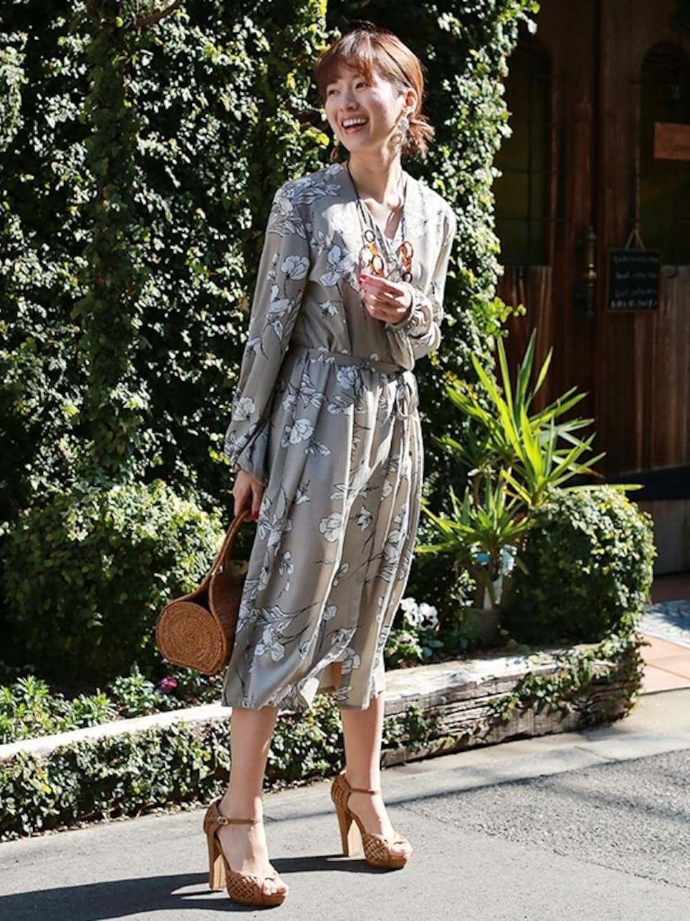 REALCUBEのワンピース「REAL CUBE フラワープリント2WAYリボンワンピース」を使ったコーディネート