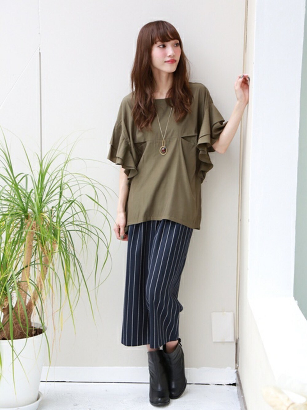 REALCUBEのシャツ/ブラウス「REAL CUBE 段フリル袖タックデザイントップス」を使ったコーディネート