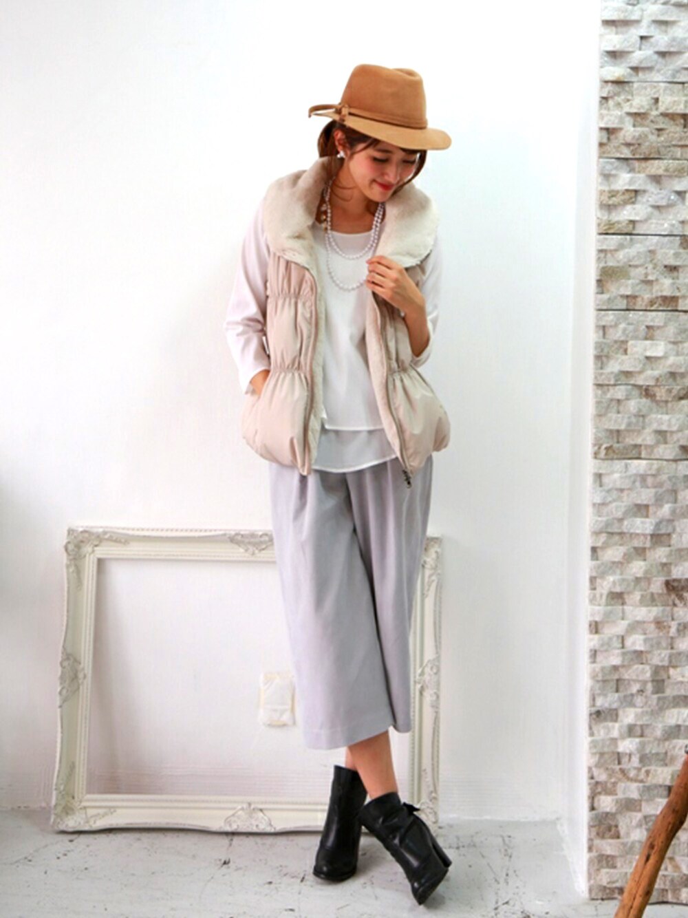 REALCUBEのダウンジャケット/コート「「REALCUBE/リアルキューブ」ゴールドZIPボアダウンベスト」を使ったコーディネート