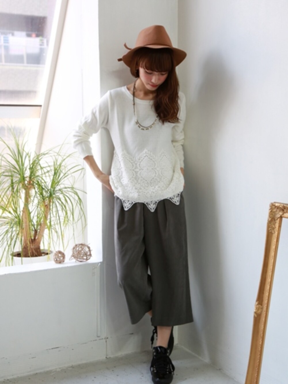 REALCUBEのニット/セーター「REAL CUBE ワイドレース鹿の子ニット」を使ったコーディネート