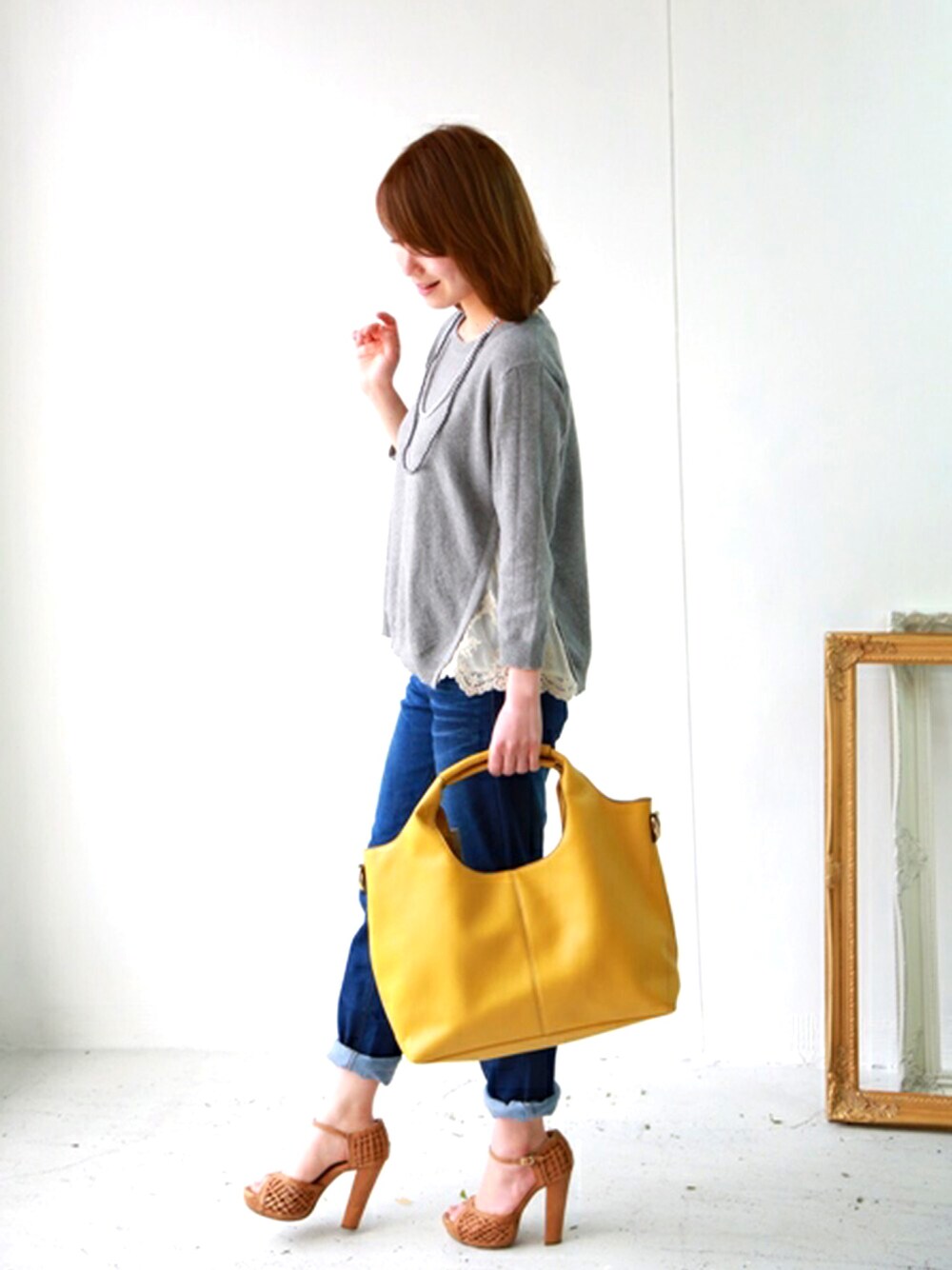 REALCUBEのショルダーバッグ「REAL CUBE 2WAY牛革バッグ ショルダーストラップ付」を使ったコーディネート