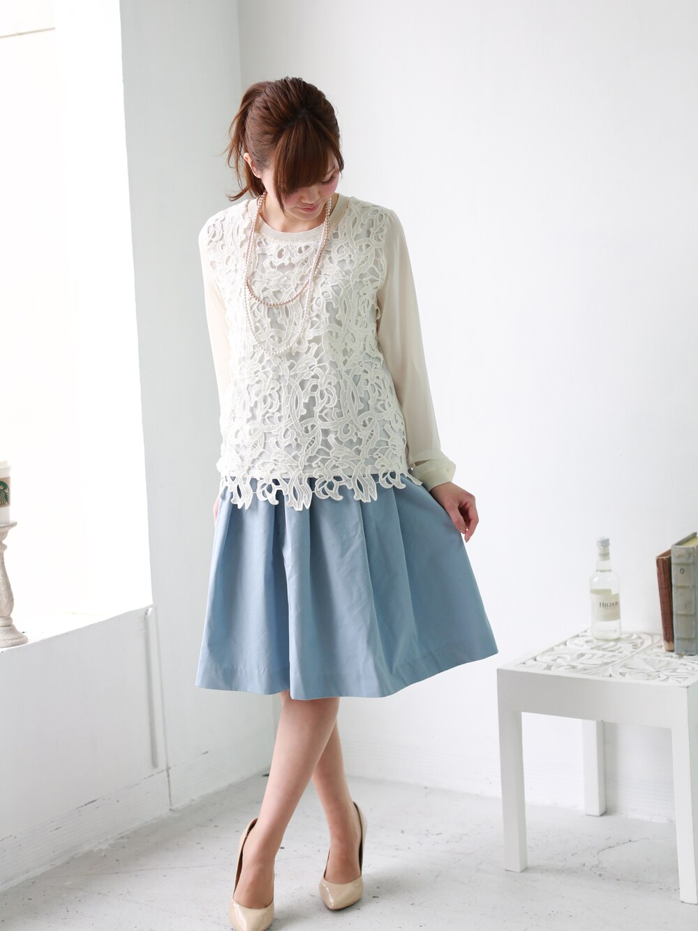REALCUBEのスカート「REAL CUBE ハイウエストフレア ミモレ丈スカート」を使ったコーディネート