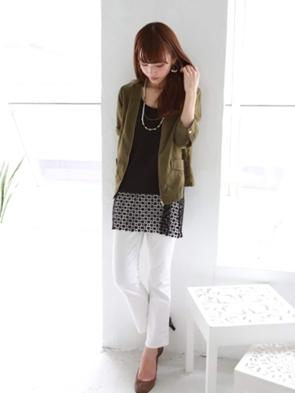 REALCUBEのタンクトップ「「REALCUBE/リアルキューブ」極上素材コットンモダール裾レースタンクトップ」を使ったコーディネート