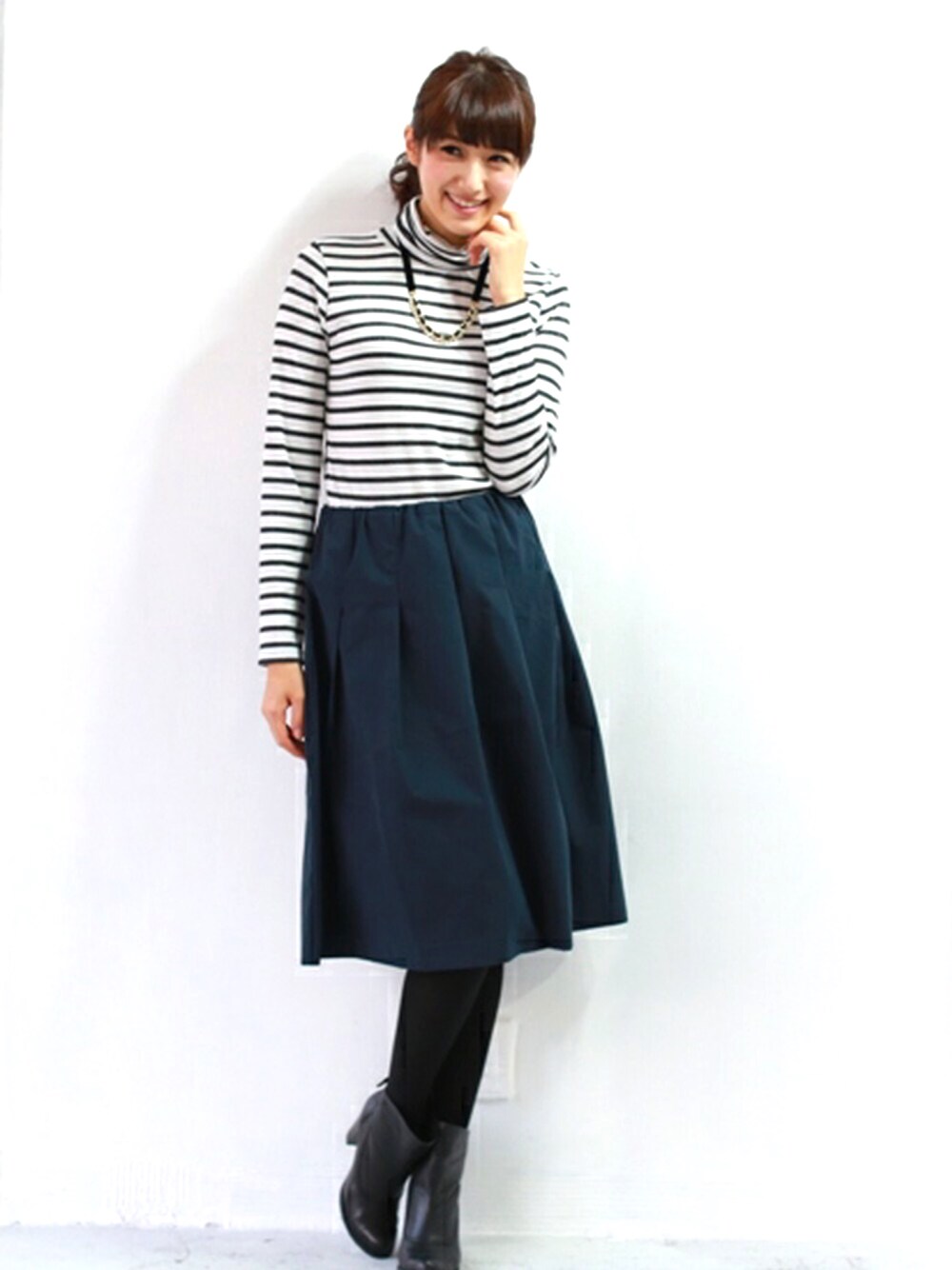 REALCUBEのスカート「REAL CUBE ハイウエストフレア ミモレ丈スカート」を使ったコーディネート