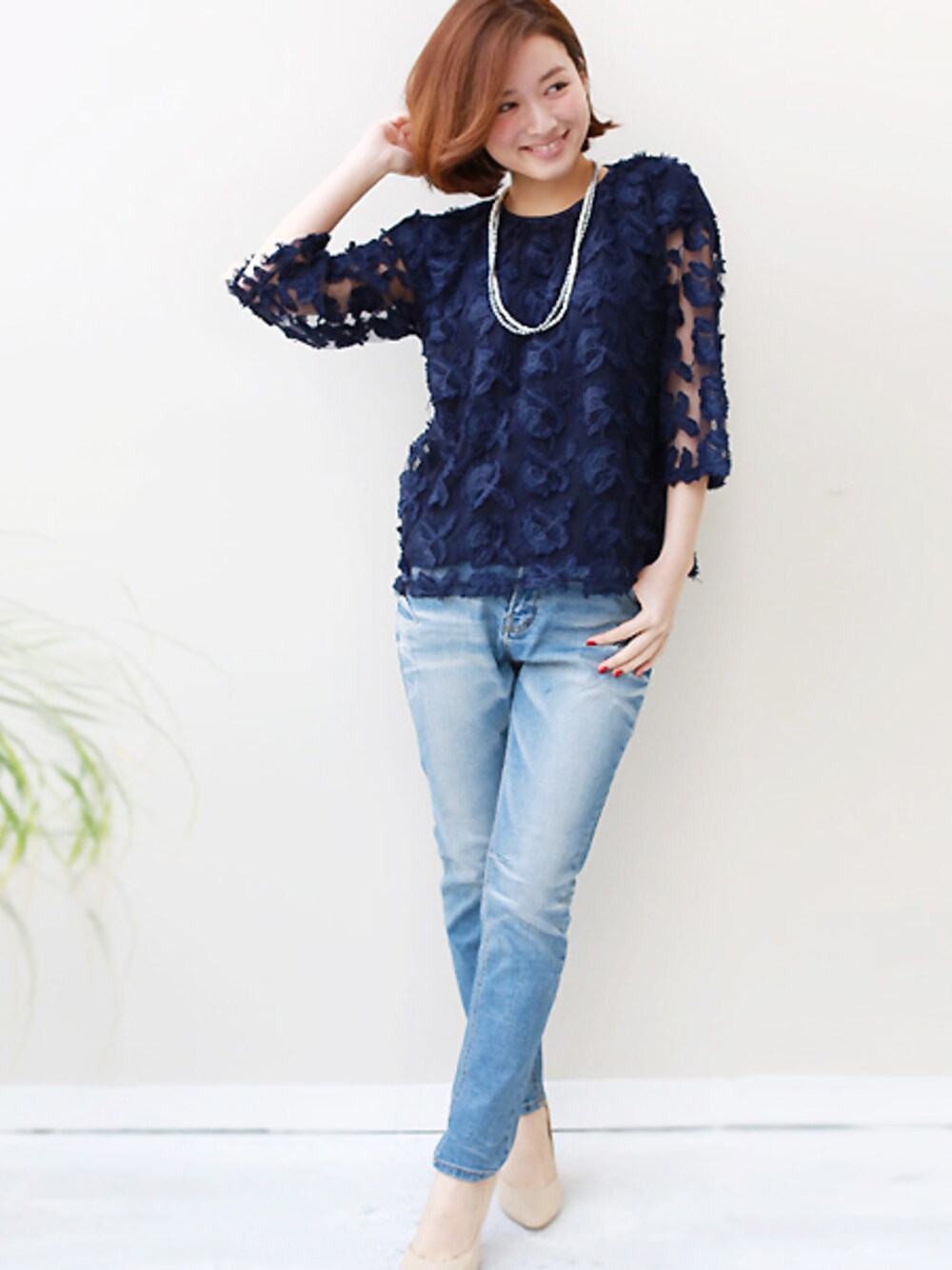 REALCUBEのその他トップス「「Cu」立体フラワーデザイン透かしレースプルオーバー」を使ったコーディネート