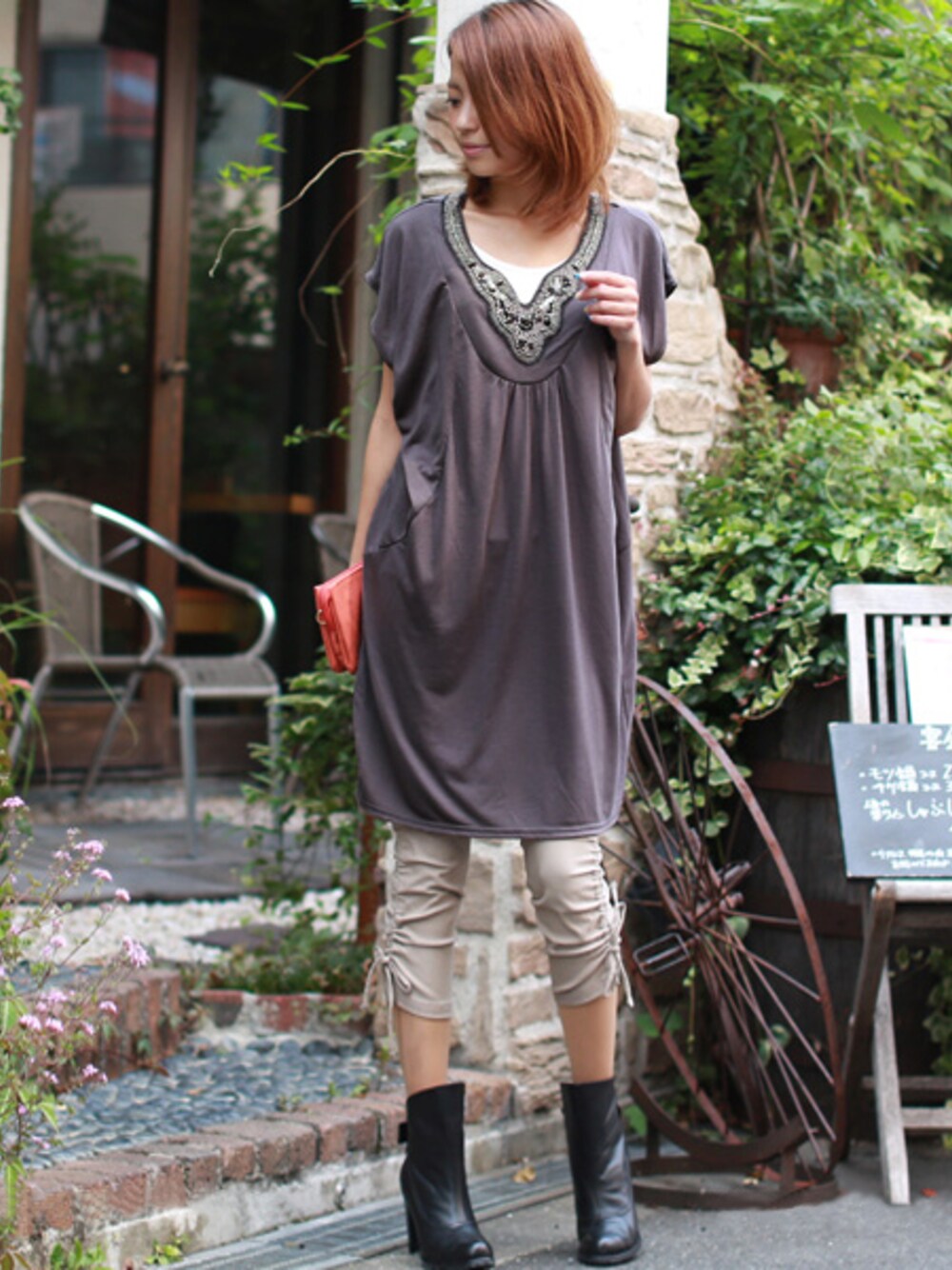 REALCUBEのチュニック「REAL CUBE オリエンタルビジューとろみギャザーチュニック」を使ったコーディネート