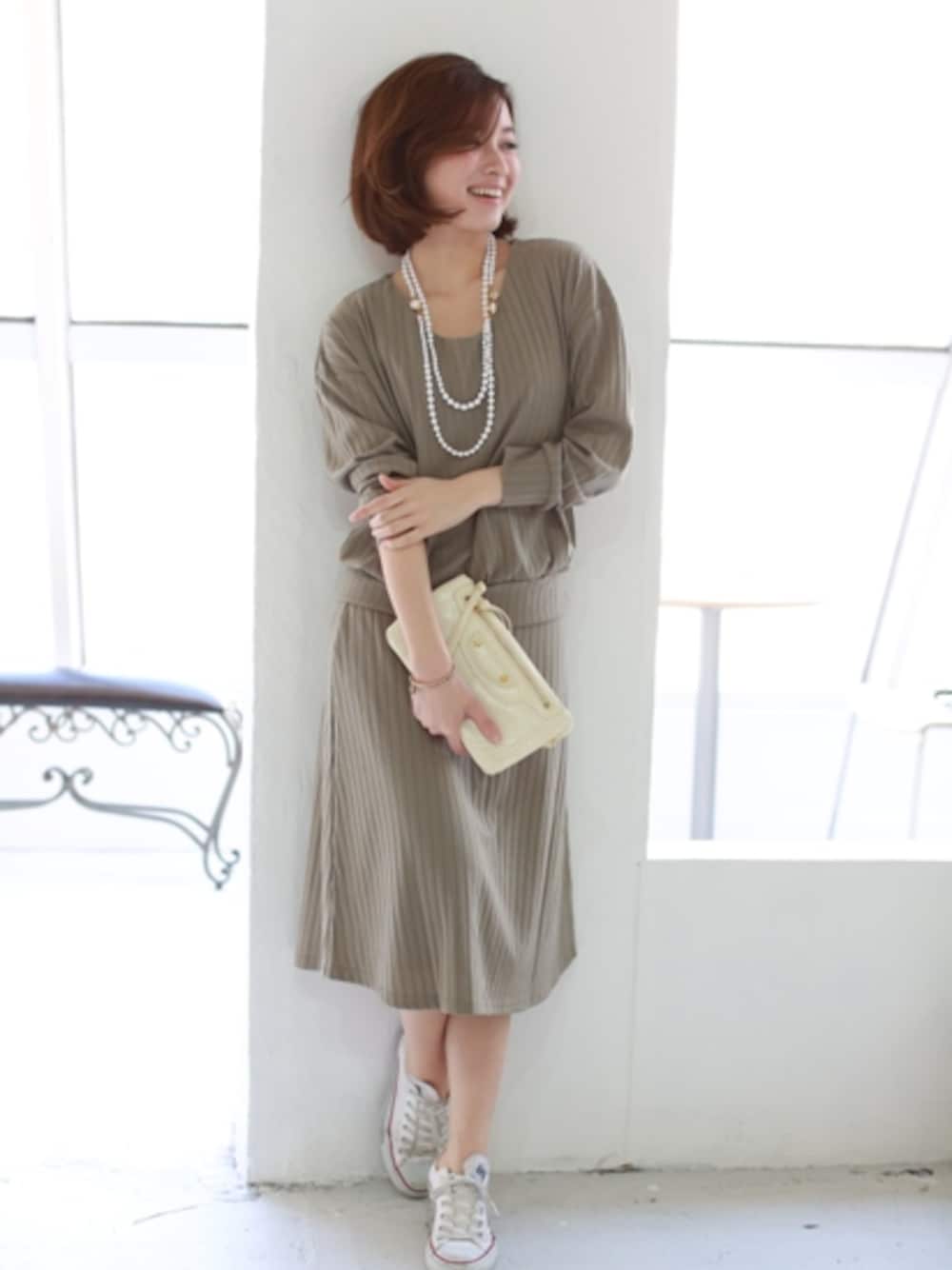 REALCUBEのワンピース「REAL CUBE リブストライプセットアップ(Vネックタイプ)」を使ったコーディネート