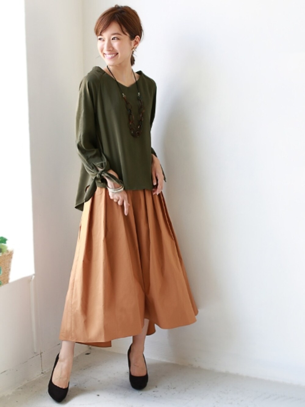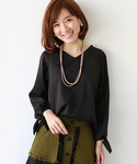REALCUBEのシャツ/ブラウス「REAL CUBE 抜け感Vネック袖リボンプルオーバーブラウス」を使ったコーディネート