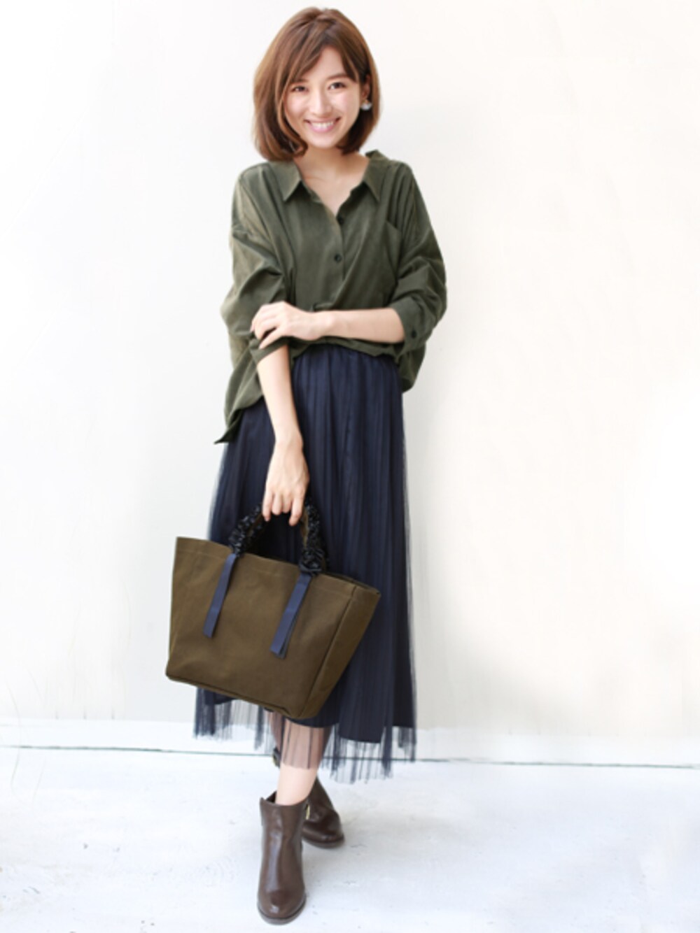 REALCUBEのトートバッグ「グログランリボンフリルハンドルトートバッグ【Mサイズ】 ショルダーストラップ付」を使ったコーディネート