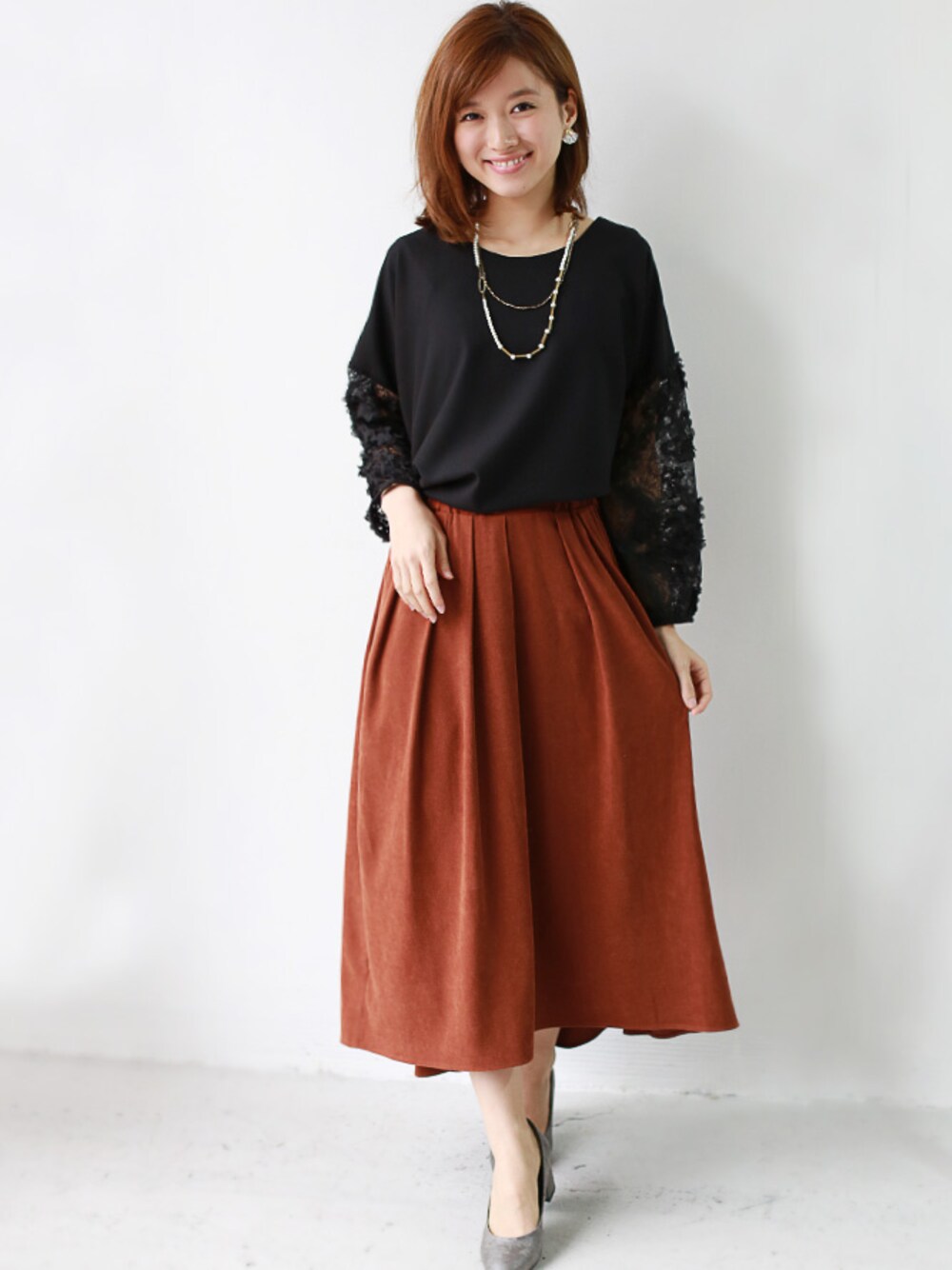 REALCUBEのシャツ/ブラウス「REAL CUBE フラワーレーススリーブブラウス」を使ったコーディネート