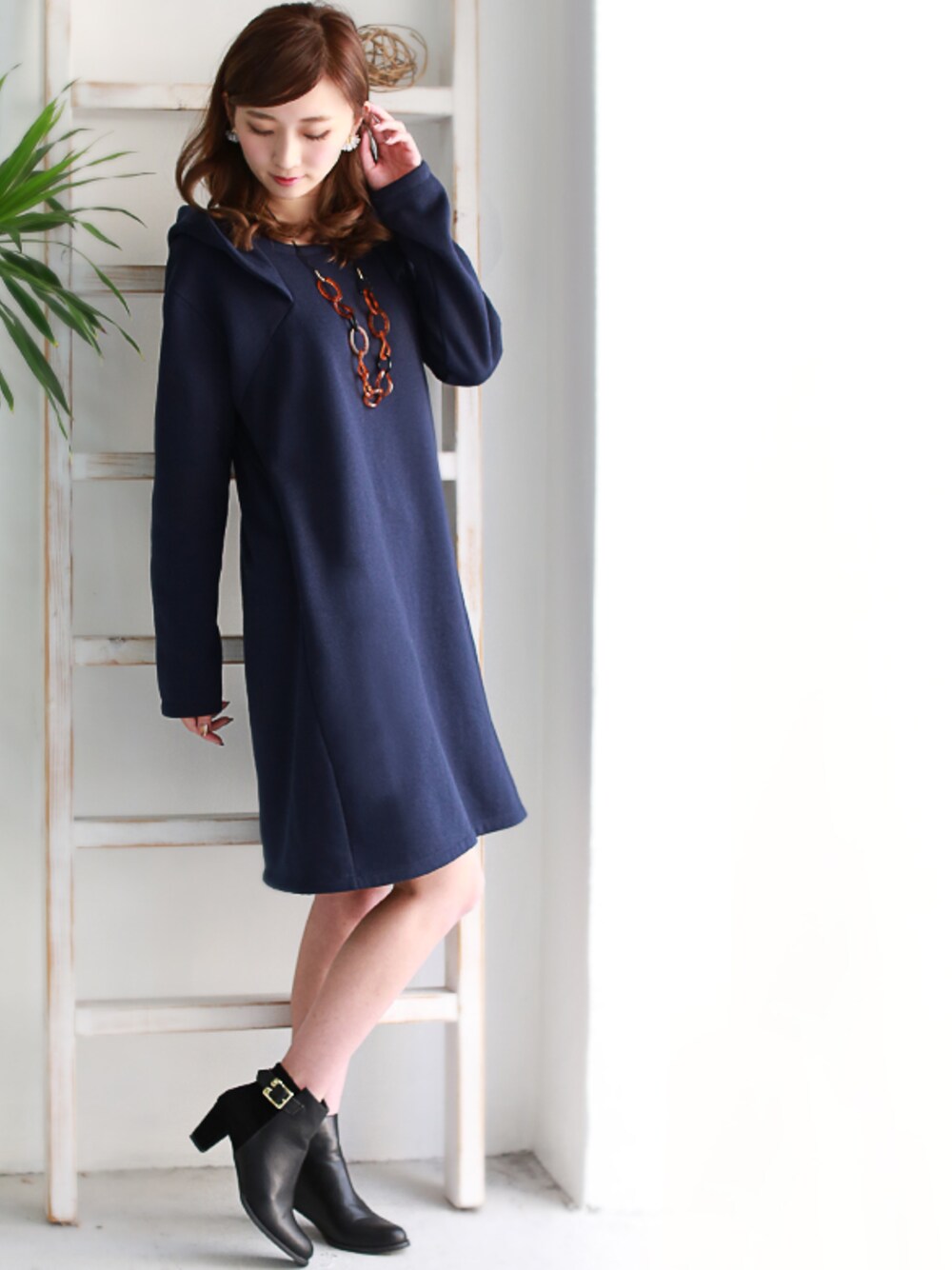 REALCUBEのワンピース「REAL CUBE 裏起毛フードデザインワンピース」を使ったコーディネート