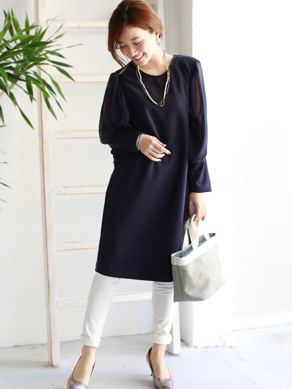 REALCUBEのワンピース「REAL CUBE シフォンスリーブワンピース」を使ったコーディネート
