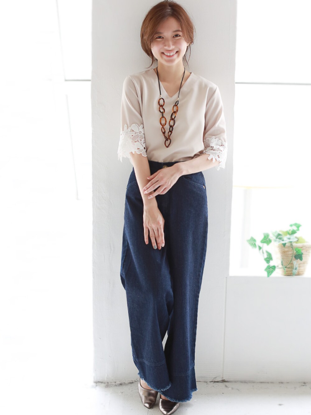 REALCUBEのTシャツ/カットソー「REAL CUBE とろみVネックレーススリーブトップス」を使ったコーディネート