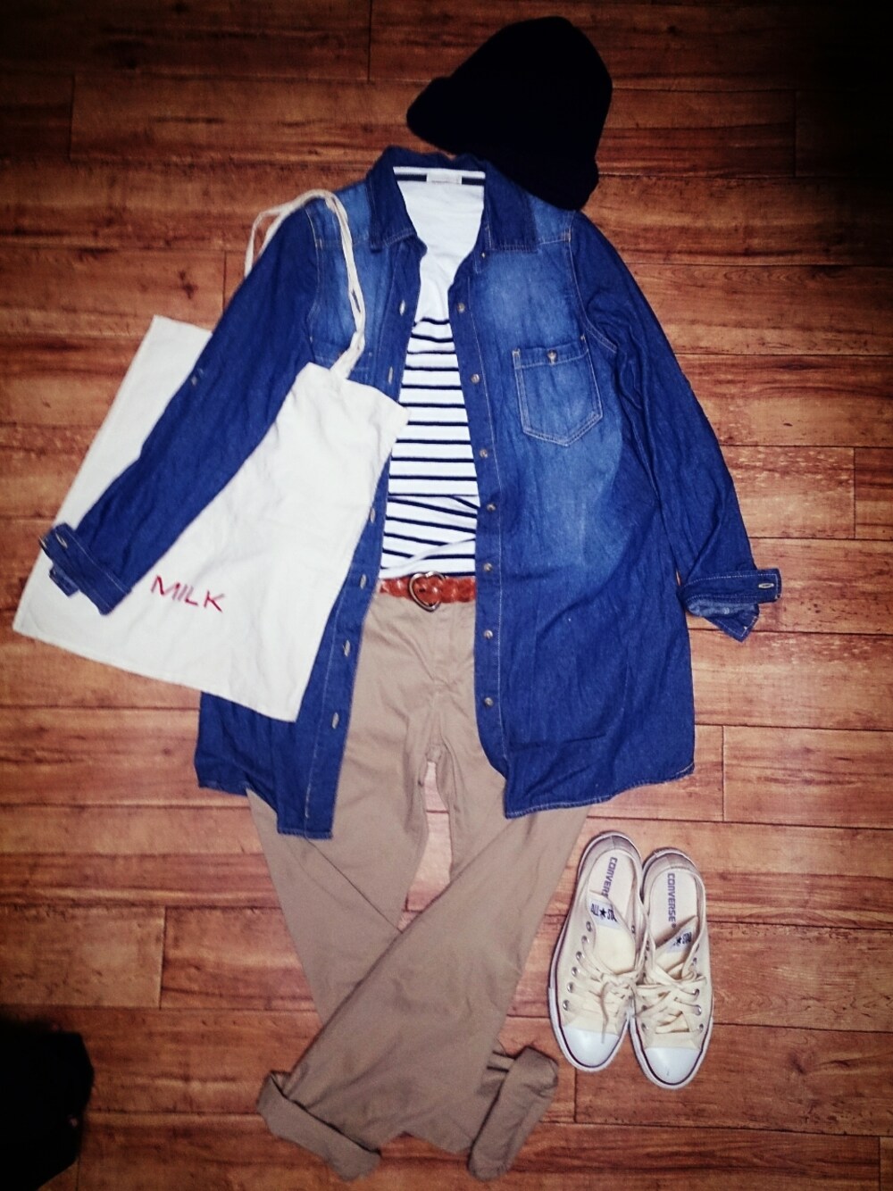 トップス:旦那さんの パンツ:UNIQLO カバン:MILK 子供と公園に行ったよ!コーデ
