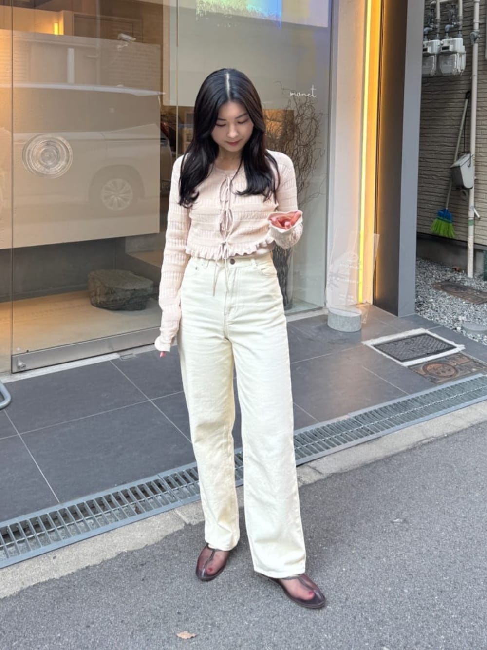 📝157cm / 骨格ナチュラル / ブルベ SAYAKAさんコラボアイテム🥨🌼 set/M denim/S shoes/LL セットアップのタンクトップとカーディガン🎽♡ お袖長め、クロップド丈がしっかりスタイルアップしてくれます。 ベージュが大人っぽくて気分🥐 サイズはMで大丈夫でした! シューズは 23.5〜24cmの甲高な私はLサイズがいいかなと思います🍳
