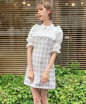 ツイードのチェック柄がキャッチーなミニワンピース👗✨お袖のパフやフリルでよりガーリーな印象にしてくれます💞