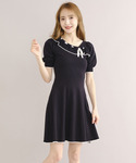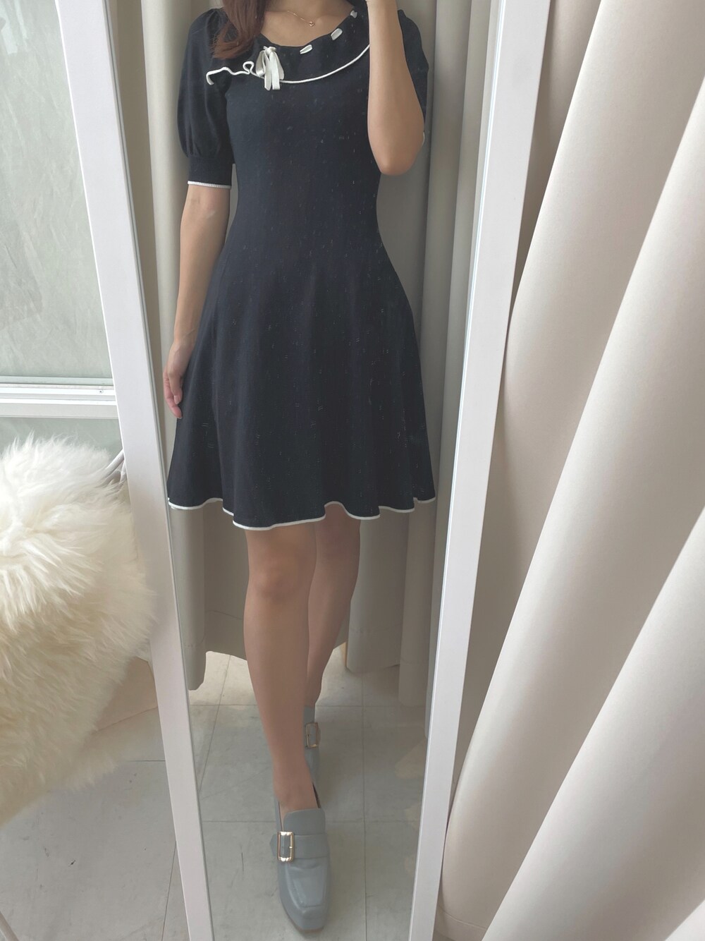 配色リボンがキャッチーなニットワンピース🍂パフスリーブやフレアなシルエットでよりガーリーな印象に❣️ 只今ZOZOTOWNタイムセール中⏰