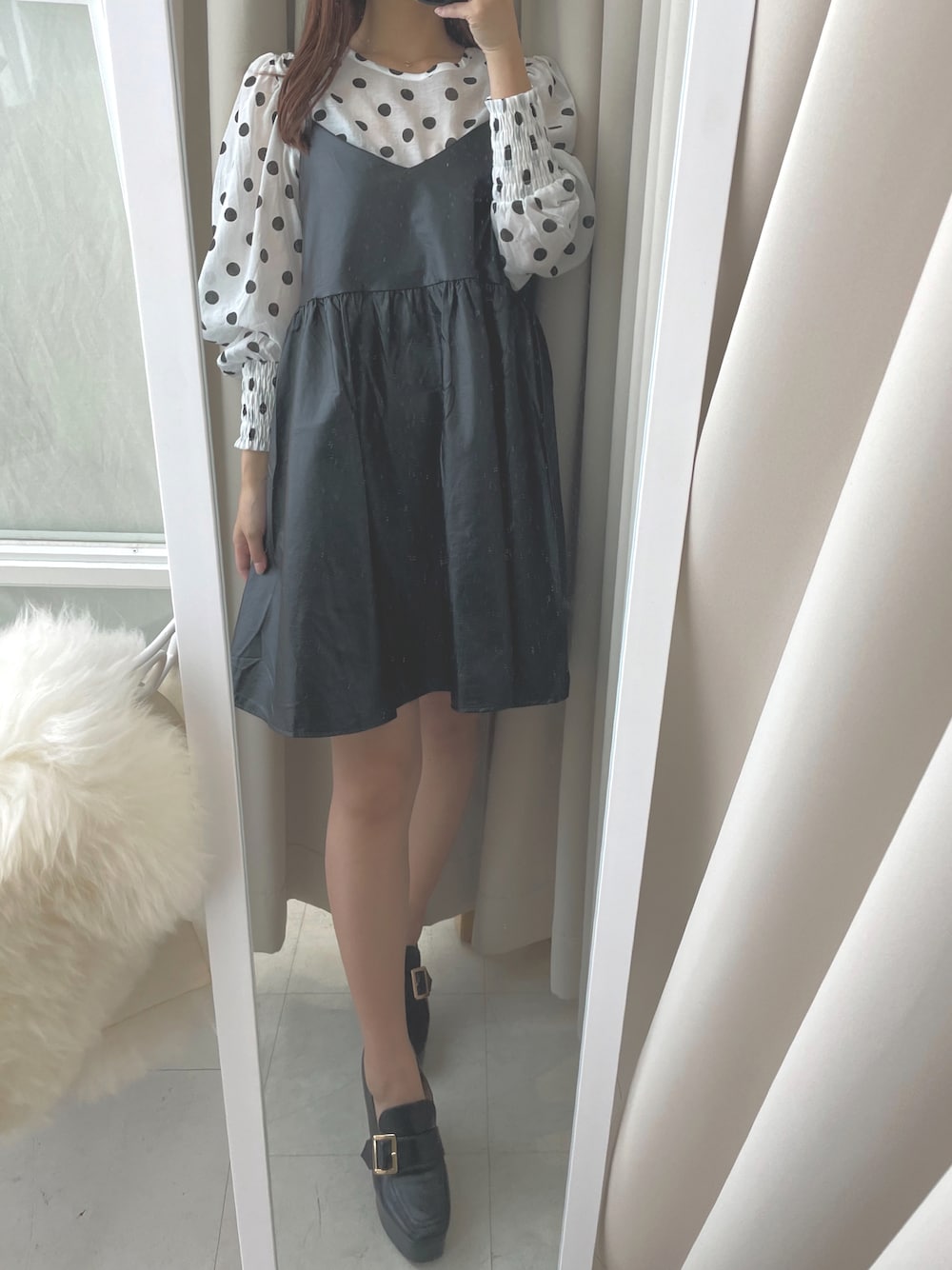 レザー素材のキャミワンピース💭インナー次第でロングシーズンお使い頂けます✨Aラインに広がるティアードデザインで甘さもプラス❣️ 只今ZOZOTOWNタイムセール中⏰