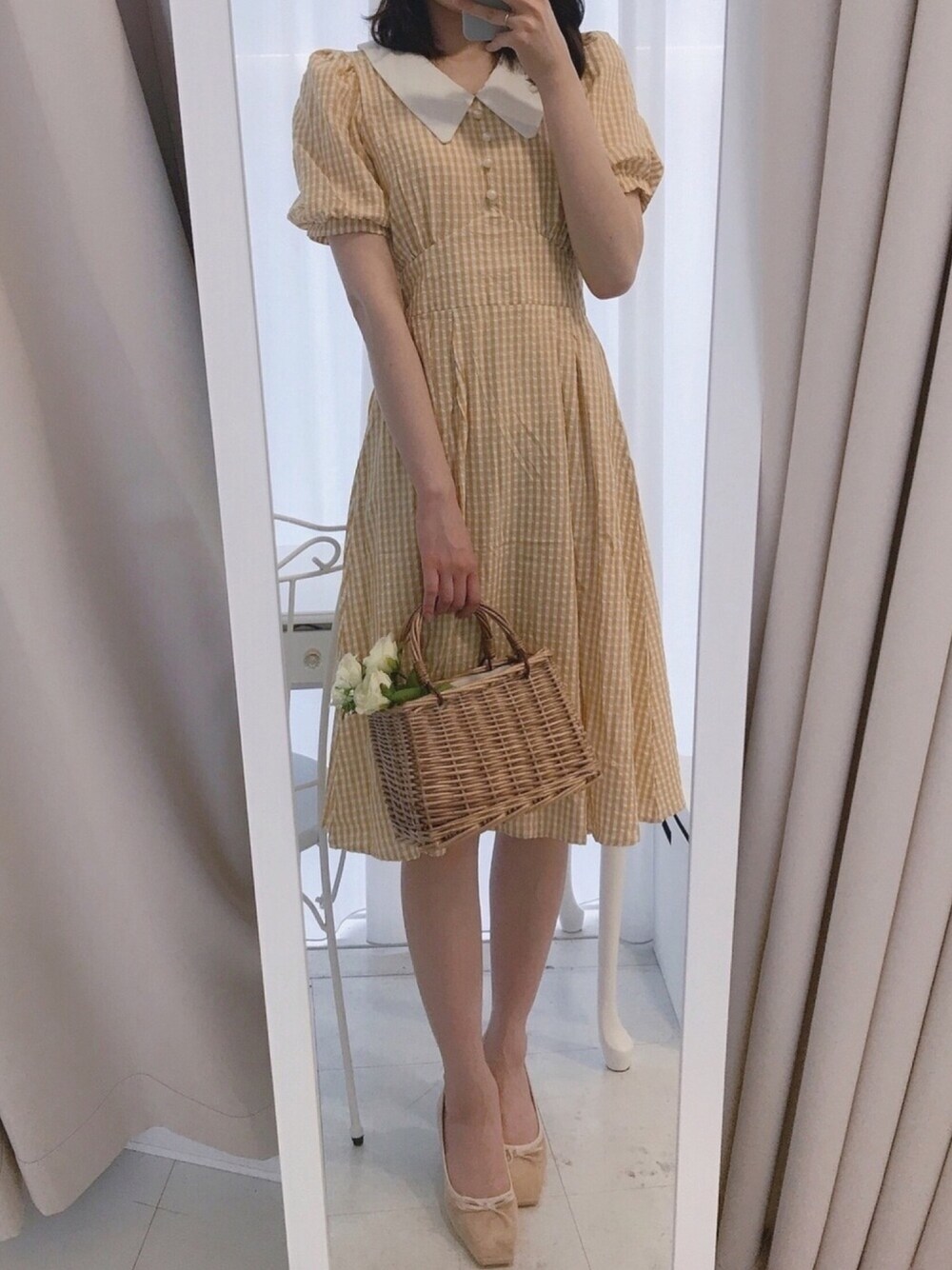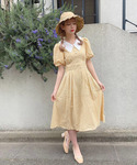 おとぎばなしから飛び出したみたいなワンピース🌼👒 長めの丈なのにスタイルアップしてくれる形なので 1枚で見せたいアイテム♡