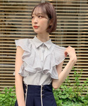 momo☁️のシャツ/ブラウス「ラッフルバイカラーレースブラウス」を使ったコーディネート