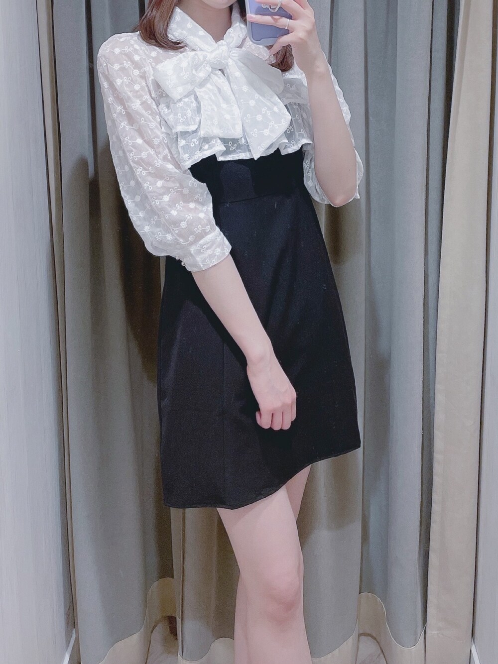 モノトーンにリボンがお約束のガーリーワンピ🖤 フリルの下はフィット感のあるシルエットでスタイルアップ✨ 7分袖で肘下まで程よくカバーしてくれます🥰