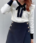 momo☁️のニット/セーター「【titty&Co.PETIT】バイカラーリボンニットトップス」を使ったコーディネート